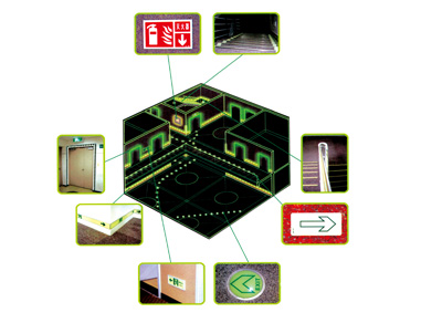 地面疏散系統、樓梯疏散系統、低位疏散指示系統、安全標志批示系統。
